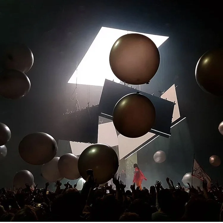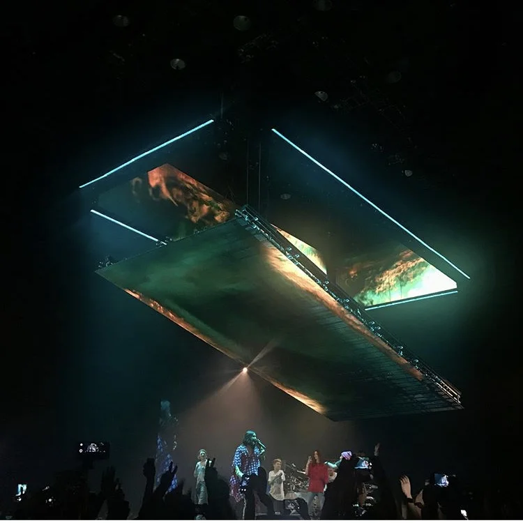 Leaps designer and owner Emily Bornt worked closely with the artist and his creative team to create a constantly evolving visual show. It toured as an Arena show, as well as several festival appearances with several variations of the lighting and video rig. The concept was to use the automated video panels as the primary lighting sources.